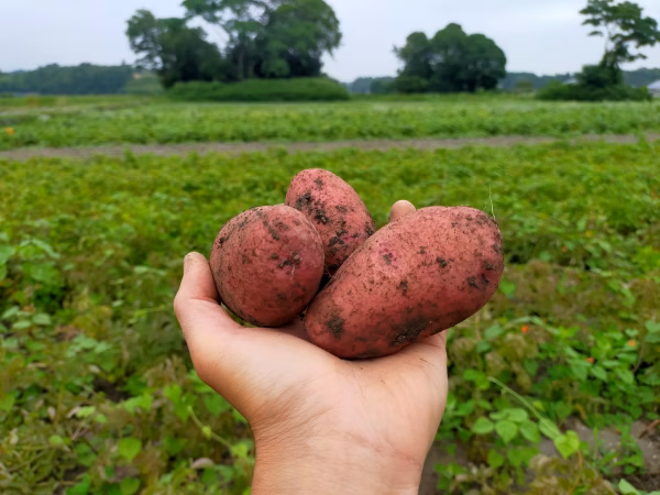 栽培期間中農薬・肥料不使用の自然栽培で育てたジャガイモ『レッドムーン』です☆