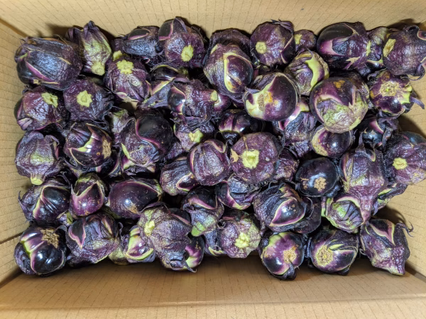 南陽市名産の薄皮丸ナスの2kgバラ詰めです。