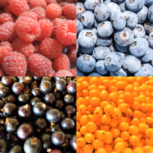 北海道十勝帯広で栽培期間中、化学農薬、除草剤を使用せず、有機肥料で愛情込めて作りました。 食べごろを見計らって、1粒1粒、手で収穫し、すぐ冷凍した、こだわりのベリーたちです。 【 北海道産ベリー詰め合わせ 】  ○ラズベリー ○ブルーベリー ○シーベリー 〇カシス 以上4種類 【ラズベリー】(北海道十勝産) ラズベリーは、日本語では『木いちご』のことで、フランス語では『フランボワーズ』といいます。 ときいろラズベリーは、以下のように様々な地道な作業により、販売されております。 ①越冬は雪の中になるよう、枝を1本1本伏せ、春に1本1本、立ち上げる ②太い枝を残し、細い枝は鎌で剪定 ③有機肥料を施し、微生物が活きている土壌で育成 ④湿気ですぐに傷んでしまう為、収穫時は雨除けビニールをかけて、実を保護 ⑤熟したころに1粒1粒、手で収穫 ⑥『ヌートカ』や『セプテンバー』など、ほかの農園では見られない美味しい希少品種を厳選 ⑦品種ごとに冷凍保管 ラズベリーはビタミンC・ビタミンEなどのビタミン類、カリウムやマグネシウム・鉄分などのミネラル類を幅広く含有し、エラグ酸やアントシアニンなどのポリフェノールも含まれています。 【ブルーベリー】(北海道十勝産) 天然の美しい紫色と、甘酸っぱい味わいと人を惹きつける香りが特徴で、スムージーやパフェ、パンケーキなど様々な料理やスイーツに活用することができます。 食べ頃を手摘みで収穫されたブルーベリーは、収穫後すぐに冷凍しています。 ブルーベリーは、ビタミン、ミネラル、アントシアニンなどが含まれる果実です。 目に良いとされるポリフェノールが含まれていることも有名ですね。 ブルーベリーの耐寒温度は、寒さに強い品種でもマイナス15℃くらいと言われております。 年に何日かマイナス25℃まで下がり、なおかつ、北海道の中では雪が少ないここ十勝では雪の中に入らなかった枝は凍害で枯れてしまい、本州のように、大きな木に育つことはありません。 そんな厳しい環境の中、耐え抜いて、力強く育った十勝産ブルーベリーです。 【シーベリー】 グミ科の鋭いトゲを持つ低木で、ユーラシア大陸の中・北部に広く自生しています。 日本では、少ないですが、北海道などで栽培されるようになってきました。 果実にはビタミンC、ビタミンA、ビタミンE、さらに果物としては珍しく油脂(不飽和脂肪酸)を含みます。 その他、鉄分、亜鉛、アミノ酸類、様々なファイトケミカルが含まれ、その種類は200種以上といわれています。 果肉および種子に油脂が含まれ、ジュースを搾ると上層にはクリーム状および液状の油脂が浮かびますが、この油脂には、不飽和脂肪酸(オメガ3・6・7・9)を含み、その油脂を含むのは、果実としては唯一シーベリーだけといわれています。 【カシス】 カシスは、ビタミン、ミネラル、アントシアニンなどが含まれる果実です。 独特な香りが強いので、ジャムやリキュール、お菓子、肉や魚に添えるソースなど、加工されることがほとんどですが、当園では、味の良い株を厳選し、栽培期間中、化学農薬、除草剤を使わず栽培し、収穫は、熟した実を1粒1粒状態を見極めながら行っています。