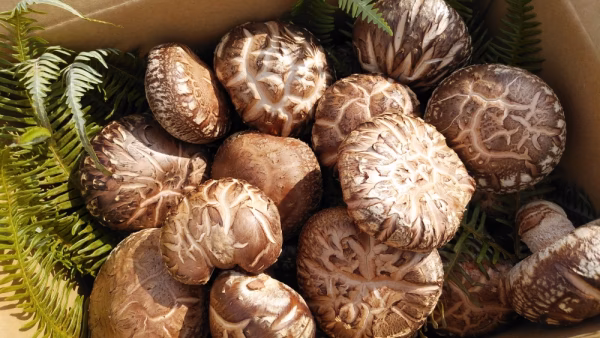 大阪府と奈良県の県境にある交野市という緑いっぱいの地域で、施設栽培ではなく自然林の中で原木しいたけを育てています。こだわって野生に近い育て方をしているのでワイルドな味わいがするかもしれません!