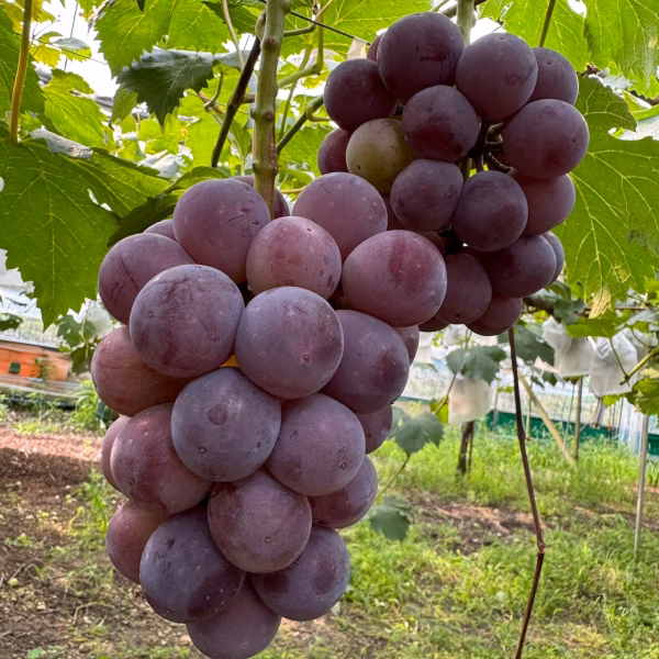 また、糖度上昇を促す反射マルチの使用や収穫期を遅らせることでより美味しい葡萄に仕上げることができます。