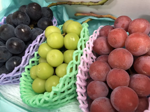 以下の緑、赤、黒の品種の中から3色組み合わせて送らせていただきます。なお、特に赤や黒色葡萄につき、着色や玉張りが悪いなどの影響でご提供できない場合があるため、品種指定の受付は出来かねますのでご了承くださいませ。