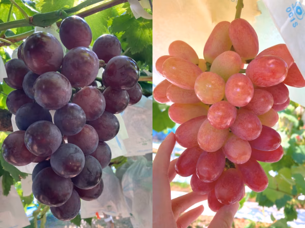 泉州ぶどうを2種二色セットにしてお届けいたします。 二つのぶどうそれぞれの味をお楽しみいただけます。 サニードルチェ→青リンゴのようなシャキシャキ食感と風味を持つ赤りんご。種なし。ほどよい酸味と甘みがクセになりぶどう。 泉州パープル→ぶどう園オリジナルブランド品種。黒ぶどうですが皮ごと食べることができ、種なし。爽やかな酸味と甘みでリピート率が高いぶどう。人気品種。 ▽品種 サニードルチェ、泉州パープルの二種 ※当園では、できるだけ農薬の散布(大阪府農薬基準の87%カット)を減らしてるため、 ぶどうの粒に傷や汚れがある場合がございます。 品質上問題はありませんので、ご安心してお召がりください。 ひとにも環境にも優しいぶどう作りを心がけています。 ※種無しで育てておりますが、稀に種が入ることがございます。 ※写真はイメージです。 ◆お届けについて◆ ヤマト宅急クール便にてお届けします。 熟れ具合、成長具合をみて収穫いたしますので、基本的におまかせとなります。お受け取り日が難しいお日にちがございましたら、備考欄にてお知らせください。 ※ぶどうの熟し具合でお届けが前後する可能性がございます。ご了承ください