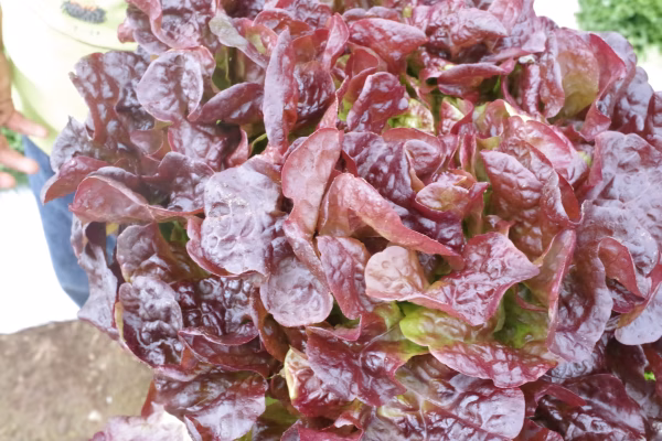 もっちりとした柏のような形の葉っぱが特徴のオークレッドレタスです!