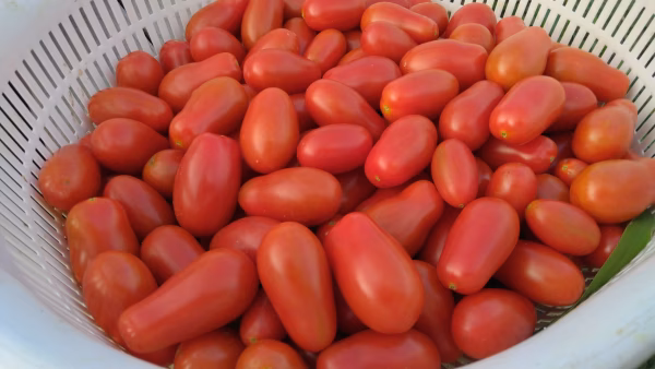 本来ビニールハウスで伸びてくる脇芽を全て欠いて、いわゆる「一本仕立て」で育てるのが一般的ですが、諸事情で「露地ソバージュ栽培」といわれる露地で半放任な育て方を今年からこの品種で検討しております。 試験的な栽培ではありますが、いい感じな果実が採れていますので少量になりますがお試しで提供いたします。 温室育ちではないというかこの時期は雨さえ降らなければハウスよりも快適な環境かもしれません。 ▼商品概要 極力完熟に近い状態で収穫発送いたします。 ▼品種・味の特徴・食べ方 品種は「ロッソナポリタン」 旨味を含んだコクのある甘さと少な目なゼリー質で非常に食べやすいです。 この時期はどの品種でも正直味は落ちますが、必要最低限の甘さはキープしております。 品種の特性で「ヘタ」が採れやすいためヘタなしでの提供になります。 ▼数量、分量の目安 1個の大きさはおよそ12~20g程度です。 凡そ200g程度に小分けした袋5袋で発送いたします。 細かな傷や軽微な色ムラ果が一部入る可能性があることをご了承下さい。また、ヘタで隠れていた部分は色づきにくいため、この部分が黄色い果実も入ります。 ▼注文に際しての注意点(配送方法や納期指定など) 宅急便60サイズに収まる段ボール箱に入れて、クール便で発送いたします。