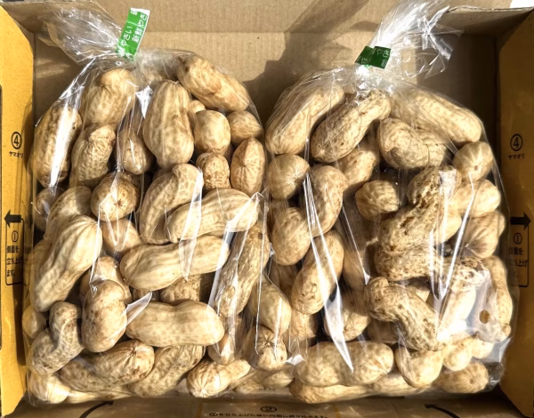 塩茹でして食べるジャンボ落花生です。市場より早く販売しています。