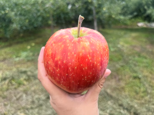 日当たりの良い傾斜地に畑があるので日照時間が長く、とてもおいしいりんごが収穫できます。