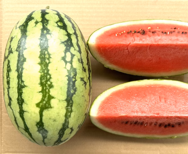 牛糞、鶏糞堆肥の有機肥料と完全無農薬で育てたシャキシャキした甘いスイカです。
