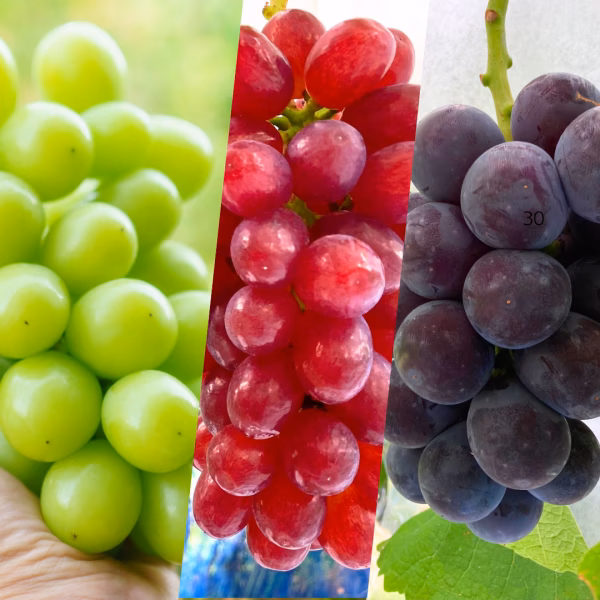 果皮が濃く、果汁たっぷりな大粒ぶどう。