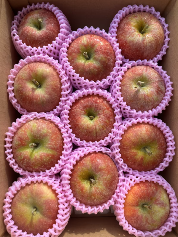 フルーツキャップやりんご専用のパックを使用し、箱に入れて発送します。