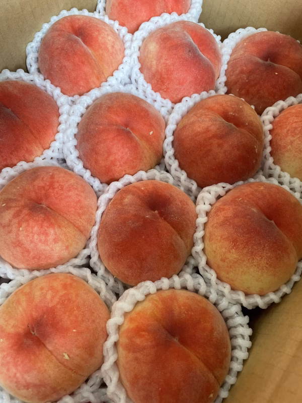 山形県大江町は、周囲を朝日連峰や月山などの雄大な山々に囲まれ、また町内を最上川、月布川といった清流ある自然豊かな地です。  山に近くミネラル豊富な土壌に恵まれ、また盆地のため昼夜の気温差が大きいことで、サクランボをはじめ、りんごやラフランスなど美味しい農産物が取れます。  そんな自然の恵みをたっぷり受けた桃をこの機会に是非ご賞味ください!  桃への思いを込めて、甘みや酸味、果肉の食感にこだわり、厳選した品種の桃をお届けします。熟した桃は皮がつるんとしており、その先に広がる甘い香りは夏の風味を感じさせます。  旬の桃は、ジューシーで甘みが豊かな美味しさが特徴です。数量限定の桃箱、2kg、3kg、5kgとしてご用意しましたので、お好きなサイズをお選びください。 桃【品種はお任せ】2kg、3kg、5kg箱 2kg箱・・・4-6個 3kg箱・・・8-10個 5kg箱・・・13-16個 品種はあかつき、まどか、おどろき、川中島白桃、だて白桃などをご用意しております。 収穫時に最もおいしいおすすめの桃をお届けします! 品種や発送時期のご希望があればご連絡ください。 【生産方法のこだわり】  当園では、果樹園の土づくりにおいて有機質肥料の使用を基本としています。  有機質肥料を投入することで、樹の生育に適した有機物の豊富な土ができ、その豊かな土が健全な樹を育み美味しい果実が取れることにつながります。  またその有機質肥料の一つとして、近隣の牧場の堆肥を利用し、地域の循環型の農業に微力ながら貢献しています。  自然の力を借りて、あくまでその手助けをしながら、消費者の方々に喜んでもらえる果実を作れるよう、日々努力を重ねています。  【ご注文前にお読みください】 重さを測って発送しますので、桃の個数はばらつきがあります。あらかじめご了承の上ご注文ください。 ご家庭用のため、ご贈答品と異なり若干の着色むらや小傷がある商品となります。味についてはご贈答品と同じです。 細心の注意を払って選果し梱包しておりますが、桃はデリケートで糖度が高く傷みやすいため発送中に傷む可能性があります。また、発送中のアクシデントなどもあるかもしれません。もし明らかな不良品がございましたら、たいへんお手数ですが写真を添付しご連絡くださいますようお願いいたします。 ※季節限定の商品のため、発送時期が異なります。 ※商品到着日時は、ご注文後にお知らせいたします。不在の日がお分かりの場合は事前にお知らせいただけると助かります。