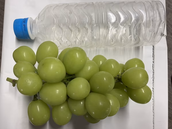 シャインマスカット家庭用(粒多く、茎少なく、多少ばらつき.黄色ぽくけど香、味、甘味も増します。)