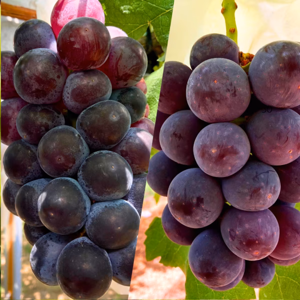果汁が多い。果肉は「巨峰」に比べてやわらかめ。