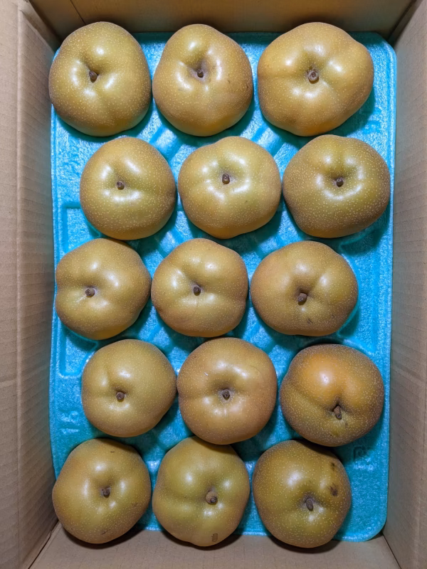 品種名は不明ですが、幸水と豊水の間に収穫されることからほしあかりと推測しております。食味も幸水や豊水と同程度です。