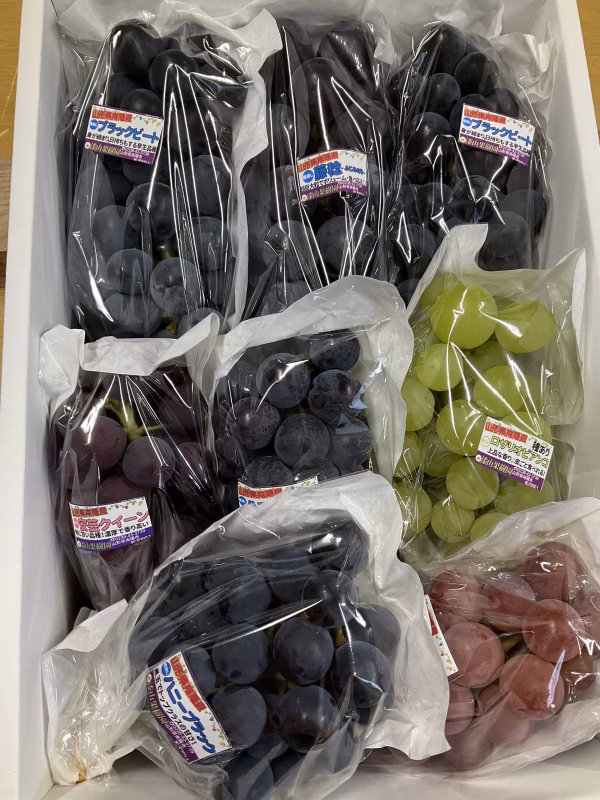 贈答用に入らなかったご家庭用のぶどうを5~8品種お入れして発送します。色づきや実の付き方がいまいちだったり粒の大きさにばらつきがあるものとなります。※同じ品種のぶどうが2房入る場合もあります。