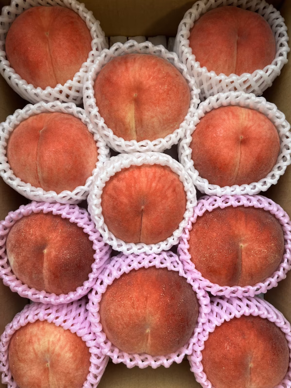 ※なるべくきれいな状態の桃で荷造りする予定ですが、一部、桃の表面の枝すれや、色むらがある桃や、桃の表面に肌荒れがある桃などが入る可能性がございますのでご理解くださいますようお願いします。