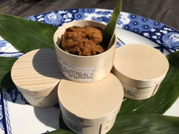 こちら寿都町でのウニ漁期は7月中旬〜8月となっています。寿都町では、ふるさと納税のお礼のお品として生ウニが高評を頂いている状態で、こちらポケットマルシェで出品する事はなかなかできませんがその生ウニを使った長期保存可能な"塩ばさみウニ"を出品させて頂きます。塩ばさみウニとは寒冷紗という布を使い粗塩を敷き、その上に新鮮なキタムラサキウニを敷き詰めて、また上に布と塩を敷き、ウニを粗塩ではさむようにして数時間熟成させます。日本酒には最高の一品、また炊きたてご飯にも、おにぎりの具にも絶品です♡