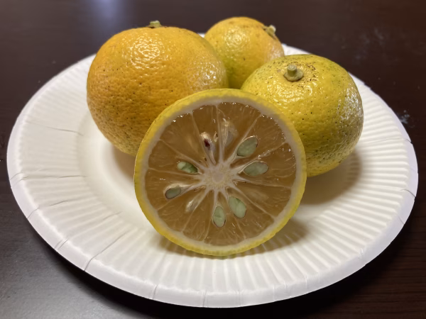 緑のカボスより酸味がまろやかになっております。