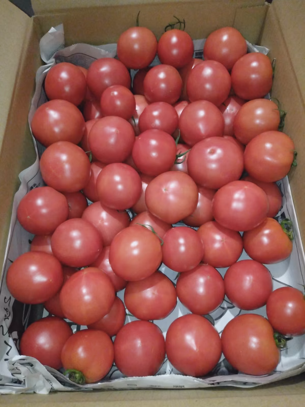 防虫網を張っていますが害虫が入ってしまうと虫を取るのが大変ですが、手作業でつぶしています。今年はだいぶクモやカマキリなどが増えて手伝ってくれています。荷造りには細心の注意を払っておりますが、小さな虫を完全に防ぎ切ることができません。到着しましたら、トマトに食害が無いか検品をお願いします。