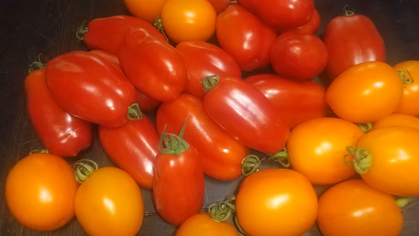 サンマルツァーノはカキやムール貝のような形で、加熱すると美味しくなるという特性をもち、パスタ料理やトマトソースにすると最適です。コストルート・フィオレンティーノは茶巾を絞ったような形で菊形トマトとも呼ばれ、輪切りにするととても綺麗です。またサンライズ・ソースは橙色の卵のような感じで、風味よく、短時間の加熱で果肉にとろみがでてソース状になり、ケチャップや保存用ソースに最適です。