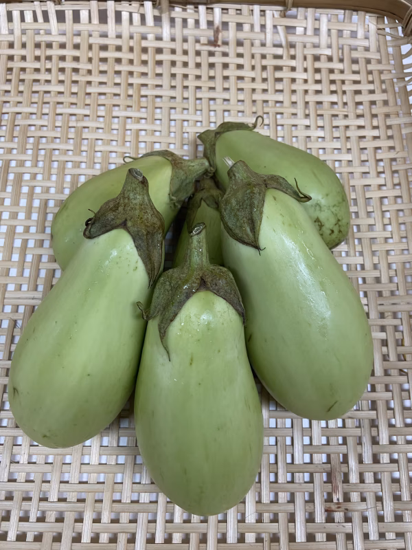 ▼商品概要・品種・味の特徴 在来種固定種の「青ナス」です。農薬不使用、化学肥料不使用で栽培しています。 1株あたりの着果が少なめなので、農家ではあまり積極的に作られていない品種です。 でも当農園では、この美味しさを大勢の皆様に知っていただこうと思って栽培しています。 ふんわりとろ~りの青ナスは、焼きナス・ステーキナス・田楽・出汁浸しにすると、とろとろ感がたっぷり味わえて、とてもとても美味しいです! 今まで黒ナスだけをお召し上がりの方も、ぜひこの青ナスを一度お試しください! ▼数量、分量の目安 1個が20~30cmくらいに育つ大きなナスです。大小混合予定です。 ▼栽培/生産方法、こだわり 無農薬、無化学肥料です。 一切農薬は使いませんので、ちょいちょい虫が通った跡が付いていたりしますが、ご了承をお願いします。 ▼注文に際しての注意点(配送方法や納期指定など) ・ご注文の翌日か翌々日には発送できると思います。 ・クール冷蔵便で発送します ▼保存方法 紙で包んで、ビニル袋に入れて、冷蔵庫の野菜室で保管すると、多少日持ちするかと思いますが、できるだけ早めに調理の上お召し上がりください。  収穫した日から、切り口の種が茶色っぽくなっている品種です。種が黒いからといって古いわけではありません。