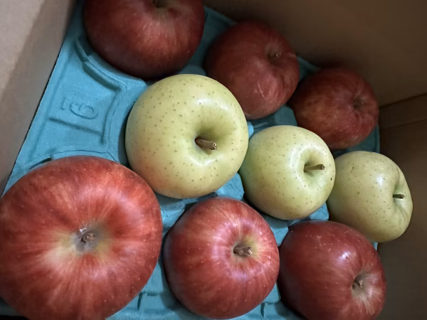 市場に出てスーパーなどに並ぶ早生品種は柔らかいものが多くなっておりますが、当園では朝収穫したものをその日内に梱包し次の日朝発送いたしますので、シャキシャキの夏のりんごをお届けします。
