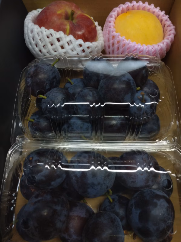また、この時期に収穫されるスモモや桃🍑やリンゴ🍏を空いてるスペースに同梱致します。何が届くかは?箱を開けるまでのお楽しみです。