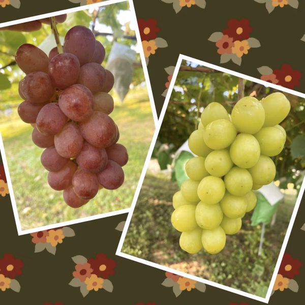 果樹屋棚木初販売!クイーンルージュとシャインマスカットを1房ずつ1kg箱にお入れしてお届けします。