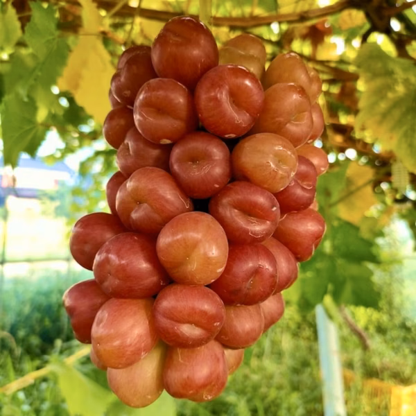 ハート型の見た目がとても可愛いぶどうです。美しい赤紫色をしており、甘みが強く、ほどよい酸味が感じられます。皮・果肉は張りがあってジューシーでしっかりしており、食感も楽しめます。