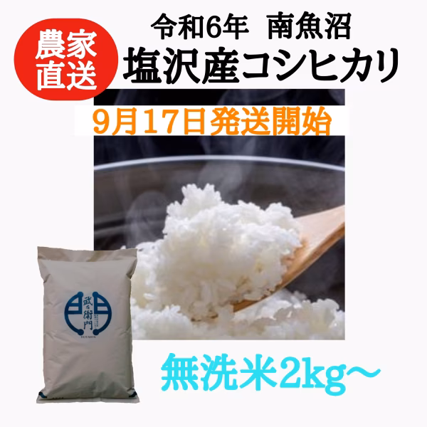 • 【R6年産】南魚沼塩沢産コシヒカリ 無洗米 2kg〜