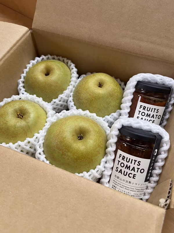 和歌山県海南市の自然豊かな里山、高津地域で桃や梨を育てています。赤土栽培のため、果物本来の味わいがしっかりすると遠方の方からも好評で、知る人ぞ知る産地と言われています。今回は、希少価値の高い菊水梨と、無添加トマトソースの限定セットをご用意いたしました。ぜひお試しください。