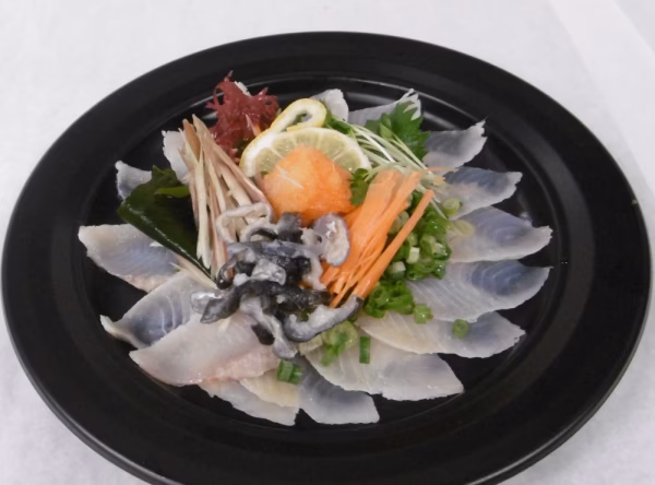 茨城県霞ケ浦(北浦)で養殖されたなまずを三枚におろし、身を焼いてあぶり刺身にしました。