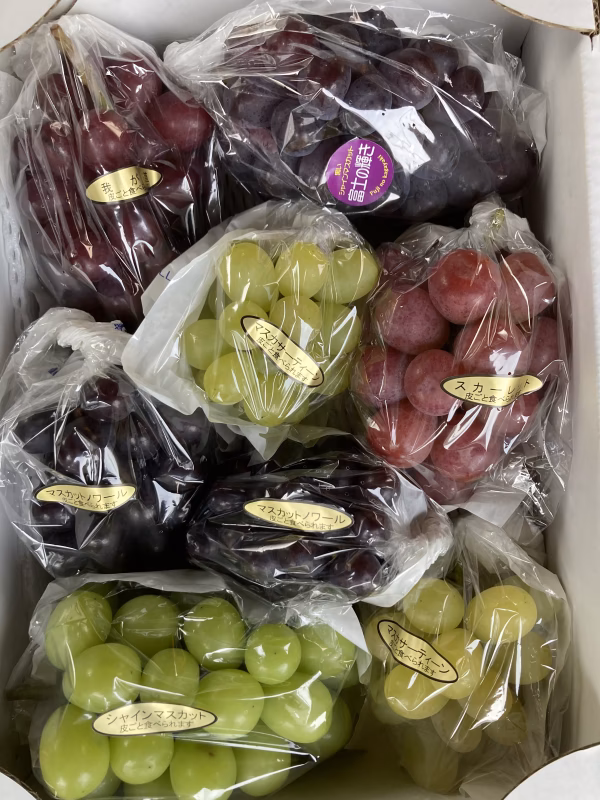 シャインマスカットと、シャインマスカットの子の新品種5種、合計6種入り合計約2.5キロ以上入です☺️
