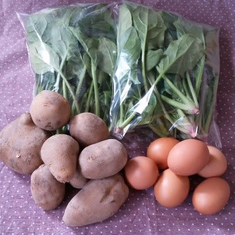 - ほうれん草、じゃがいも:冷暗所で保存してください。 卵 : 冷蔵庫で保存してください。賞味期限は3週間にしてあります。