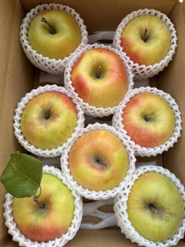 ※なるべくきれいな状態のりんごで荷造りする予定ですが、一部、りんごの表面の枝すれや、色むらや、サビなどがあるりんごなどが入る可能性がございますのでご理解くださいますようお願いします。