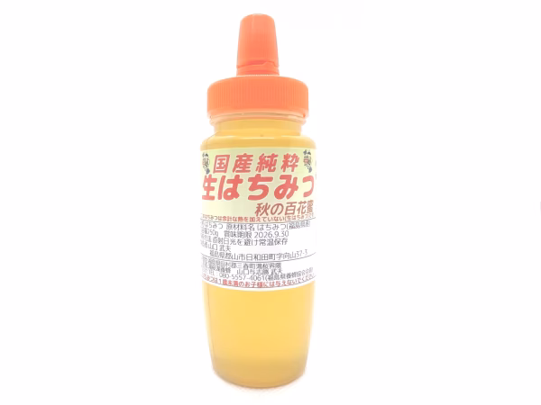 【秋の百花蜜】は糖度も粘度も高くしっかりした味わいと花粉の香りの風味が特徴のはちみつになります。