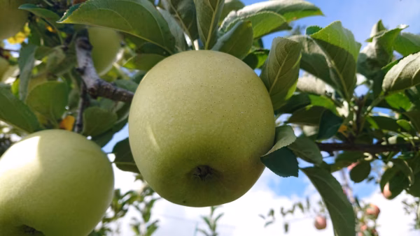 「ゴールデンデリシャス」と「千秋」を交配して作られました。