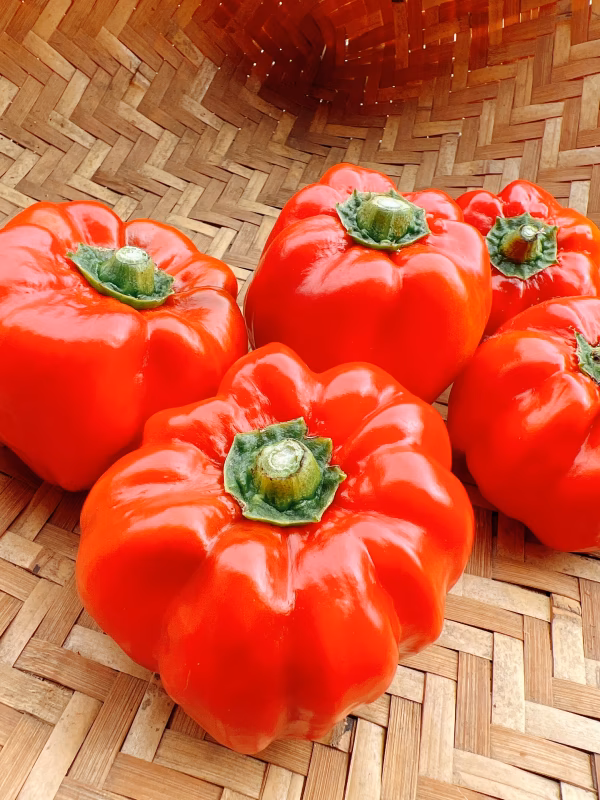 真っ赤に熟した神楽南蛮! 辛味も強めです! 新潟の伝統的なお野菜の神楽南蛮です。 見た目はピーマンですが、ピリッとした爽やかな辛味が癖になる唐辛子です。 炒め物、肉詰め、素揚げ、みそ焼き、醤油漬けなど万能です。 新潟では神楽南蛮味噌にするのが定番です。 ナスとの相性が抜群なので、一緒に味噌炒めにするのもおすすめです。 種と綿に強い辛味があるので、お好きな方は調整して入れて下さい。 調理するときは手袋を推奨します。 1kgで約20〜25個程度入ります。 (大きさや重さによって変動します) 神楽南蛮は個性的な形をしたものが多く、一つ一つ形が違います。 そちらもお楽しみください。 ゆうパック冷蔵便でお送りします。 沖縄県へのお届けは購入前にご相談ください。