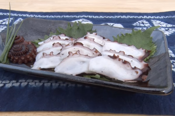◎ 噛めば噛むほどタコ本来の甘みと茹で汁の深みが感じられるタコ。