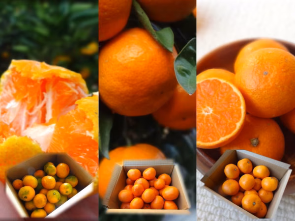 緑色での収穫が一般的な「ゆら早生」ですが、当園では、ややオレンジ色に着色した「甘熟収穫」で収穫します。これにより、甘みと酸味がバランス良く、より濃厚な味わいが楽しめます。