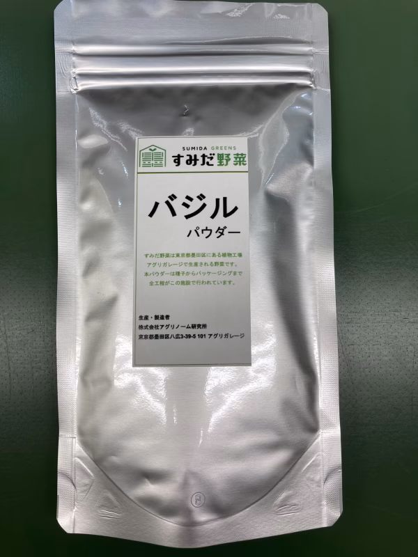 すみだ野菜は東京都墨田区にある植物工場アグリガレージで生産される野菜です。本パウダーは種子からパッケージングまで全工程がこの施設で行われています。