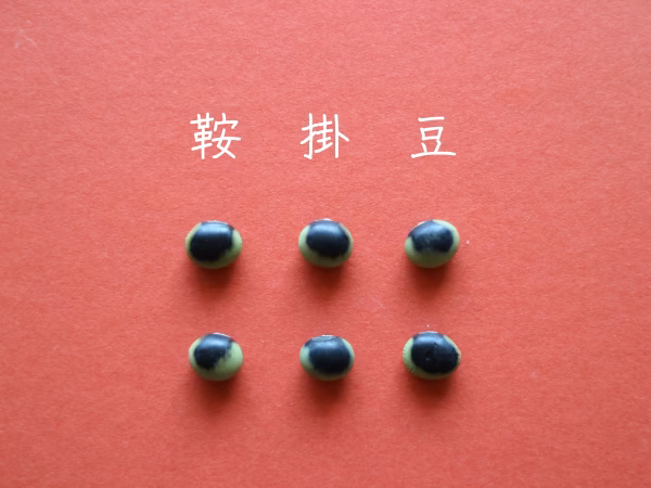 ●鞍掛豆・・・馬に鞍をかけたような黒と緑の模様の大豆です。平べったい形なので丸い大豆とは違うコリコリした食感です。塩茹でや浸し豆で風味をシンプルにお楽しみ下さい。