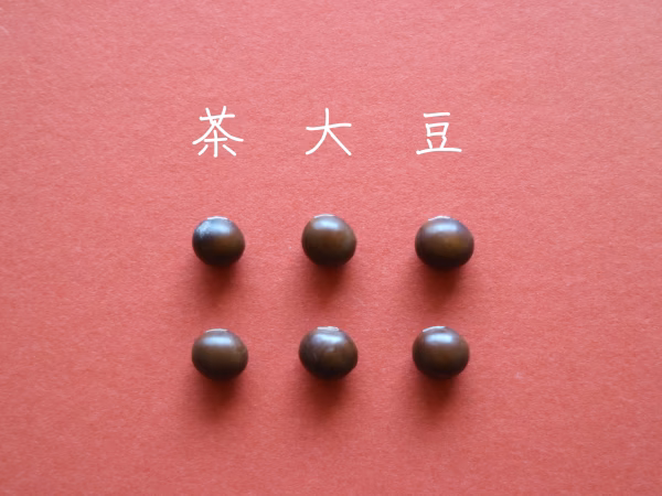 ●茶大豆・・・モッチリとした食感と栗のような味が特徴の大豆です。皮が薄いので食べやすく、豆くささも有りません。色を生かして料理のアクセントとしてお使いください。