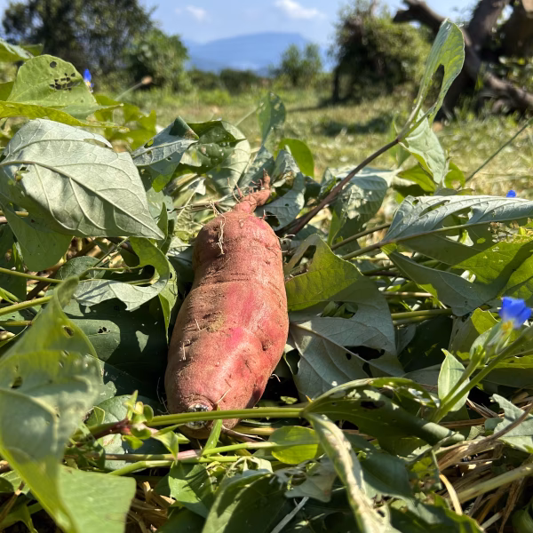 栽培期間中、農薬、化学肥料、除草剤を一切使用せず、海の向こうには鹿児島県が臨める山の中で大切に育てた紅はるかの新芋をお届けします。