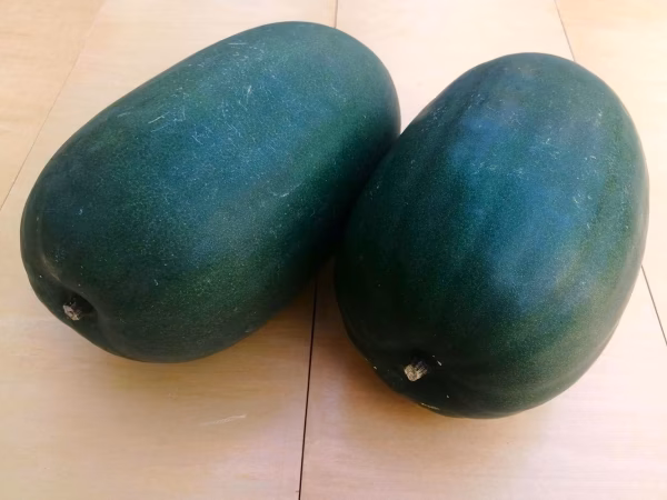 冬瓜(トウガン)2個入り~。俵形のミニ冬瓜と円筒形の沖縄冬瓜があり。品種のご希望がございましたらご連絡を。