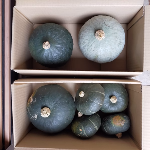 ▼商品概要 青森県産のかぼちゃ1~4種のセットです。 硬くて切ることが大変な方向けはカット商品を選択してご購入ください。※商品ページは別です ▼セット内容 ブラックのジョー(写真2枚目) メルヘン(写真3枚目) 雪化粧(写真4枚目) 栗っぷち(ミニカボチャ)(写真5枚目) ▼数量、分量の目安 【4種 8㎏以上】 ブラックのジョー、メルヘン、雪化粧は各1玉、栗っぷちは4~8玉で調整します。1枚目の写真は栗っぷち4玉で詰め合わせた状態です。 1枚目の写真のように段ボールに詰め合わせ、ダンボール2個を重ねあわせ、1個口での発送といたします。 【3種 4㎏以上】 ブラックのジョー、メルヘン、雪化粧のうちいずれか2種を各1玉、栗っぷちは2~4玉で調整します。 ▼注文に際しての注意点 下記についてご理解いただいた上で、ご購入いただきますようお願いいたします。 ・【重要】カットしていないため、内部の状態は生産者でも把握が難しいです。特にかぼちゃにはカボチャミバエの幼虫が入っている場合があります。返品交換等は難しいことをご了承ください。 ・各品種の大きさはバラバラです。 ・段ボールの隙間に梱包材として古新聞を使用します。 ・詰め合わせの品種を少なくすることも対応可能です。メッセージでご要望をお知らせください。 ・6~8枚目の写真のように土に接していた部分の変色や傷等がありますが問題なく食べられます。固い場合は外してお召し上がりください。 ・かぼちゃは追熟で甘くなります。甘みが充分に高まってくると同時に傷みやすくなります。 ・発送日の相談は事前にお願いいたします。到着日時指定は、購入者様にてヤマト運輸へ受け取り日時変更して頂くようお願いいたします。