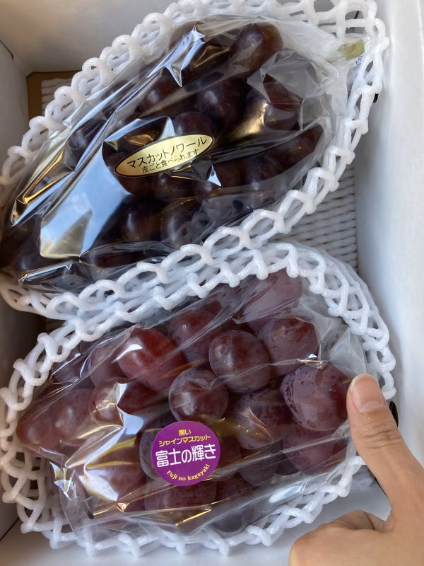富士の輝きは、歯応えある食感で、糖度も高く20度前後になり、30度近くなるのもあるそうです。非常にコクがあり、黒糖のような味わいがあります!さらに、皮まで美味くて、頬張ってぶどうの味を楽しんだあと、最後に皮が残るのですが、その皮まで味がするので、いつまでも噛んでいたくなるような気がします笑