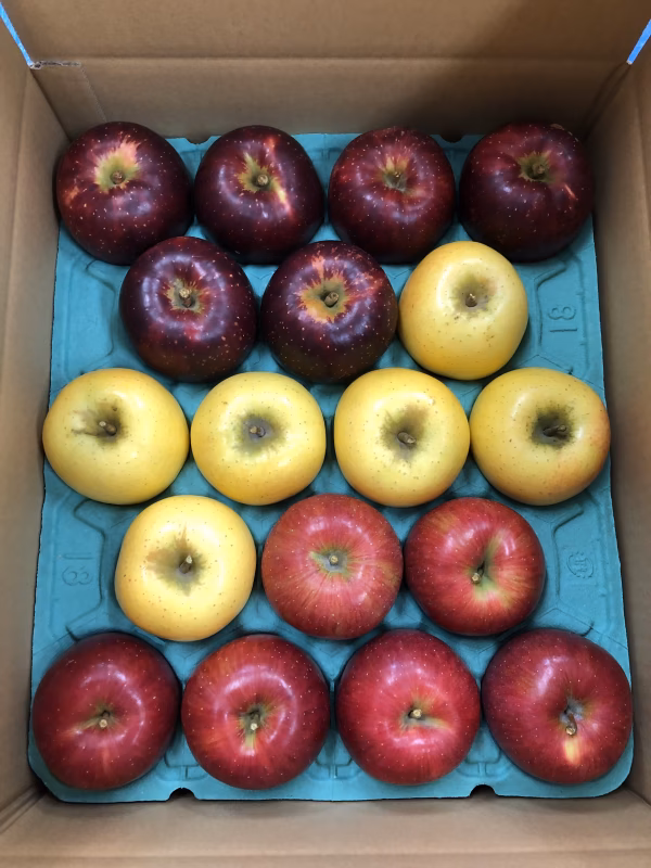 長野県で育成された3品種、秋映、シナノスイート、シナノゴールドを一箱に詰め込んだ贅沢な一品です。  飛騨の地で育ったリンゴですが、私の学んだ長野県が産んだお勧めの3品種です。  「秋映」は、赤黒いほど濃く着色をします。色も濃いのですが、味も甘味酸味ともに強く、濃い味となっております。  「シナノスイート」は、とにかく甘いです。酸味をほとんど含んでいないため、甘味を強く感じることができます。  「シナノゴールド」は、黄色のリンゴで、パリッとした食感が特徴です。甘味も酸味もありクセになる人も多数です。