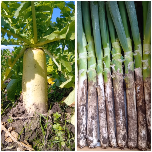 • ぽっけの大根・葉付き5キロ 長ネギ3キロセット クール便【北海道自然栽培】