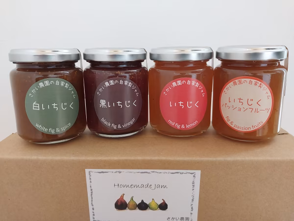 - <いちじくジャム> ◆名称:ジャム類(いちじく) ◆内容量:140ml ◆原材料名:いちじく(サマーレッド、桝井ドーフィンなど ・常滑産)、砂糖、レモン◆保存方法:直射日光/高温多湿 を避ける◆製造者:さかい農園 酒井良子 愛知県常滑市 坂井字西山神32-3 栄養成分表示(100gあたり)/熱量197 kcal、たんぱく質0.6g 、脂質0.1g、炭水化物51.3g、食塩相当量0.0g(推定値) <いちじくパッションフルーツジャム> ◆名称:ジャム類(いちじくとパッションフルーツ) ◆内容量:140ml◆原材料名:いちじく(常滑産)、砂糖、パ ッションフルーツ◆保存方法:直射日光/高温多湿を避ける ◆製造者:さかい農園 酒井良子 愛知県常滑市坂井字西 山神32-3 栄養成分表示(100gあたり)/熱量179 kcal、たんぱく質0.6g 、脂質0.1g、炭水化物46.6g、食塩相当量0.0g(推定値) <白いちじくジャム> ◆名称:ジャム類(白いちじく) ◆内容量:140ml ◆原材料名:白いちじく(バナーネなど・常滑産)、砂糖、 レモン、スパイス◆保存方法:直射日光/高温多湿を避ける ◆製造者:さかい農園 酒井良子 愛知県常滑市坂井字西 山神32-3 栄養成分表示(100gあたり)/熱量178 kcal、たんぱく質0.6g 、脂質0.1g、炭水化物46.3g、食塩相当量0.0g(推定値) <黒いちじくジャム> ◆名称:ジャム類(黒いちじく) ◆内容量:140ml ◆原材料名:黒いちじく(ビオレソリエス、イスキアブラッ クなど・常滑産)、砂糖、ワインビネガー ◆保存方法:直射日光/高温多湿を避ける ◆製造者:さかい農園 酒井良子 愛知県常滑市坂井字西 山神32-3 栄養成分表示(100gあたり)/熱量177 kcal、たんぱく質0.6g 、脂質0.1g、炭水化物45.9g、食塩相当量0.0g(推定値)